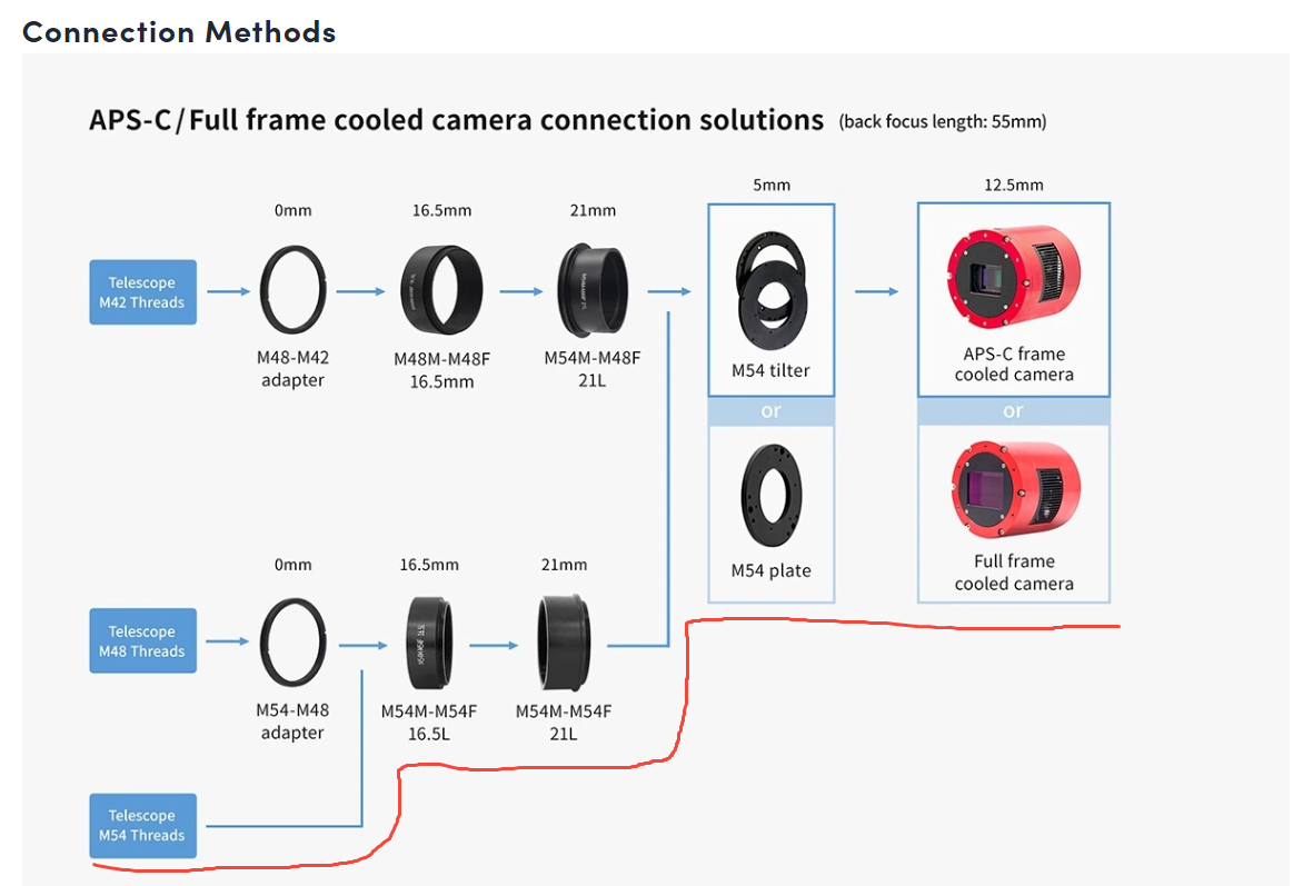One thing I noticed is the back focus on the 461MM (17.5mm no tilt plate)+ darkening ring (0.2mm) + 50mm square eaf (16mm) + OAG-L-68 (17.5mm) + M68 Tilt plate (5mm) comes attached with oag-l-m65 + 2 darkning rings (.2mm each) this is a total back focus of 56.4mm vs 55mm.