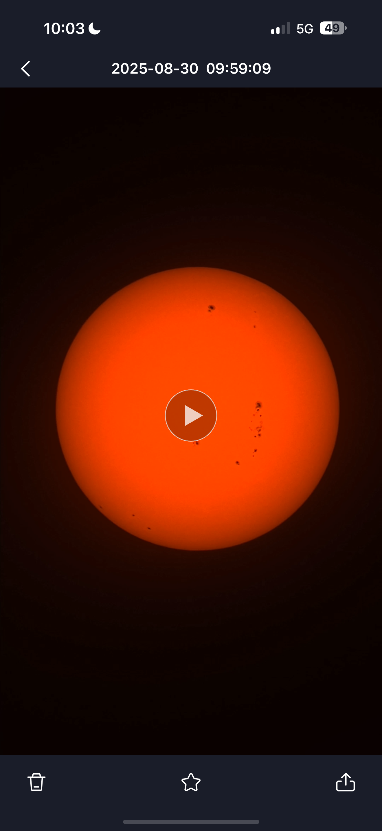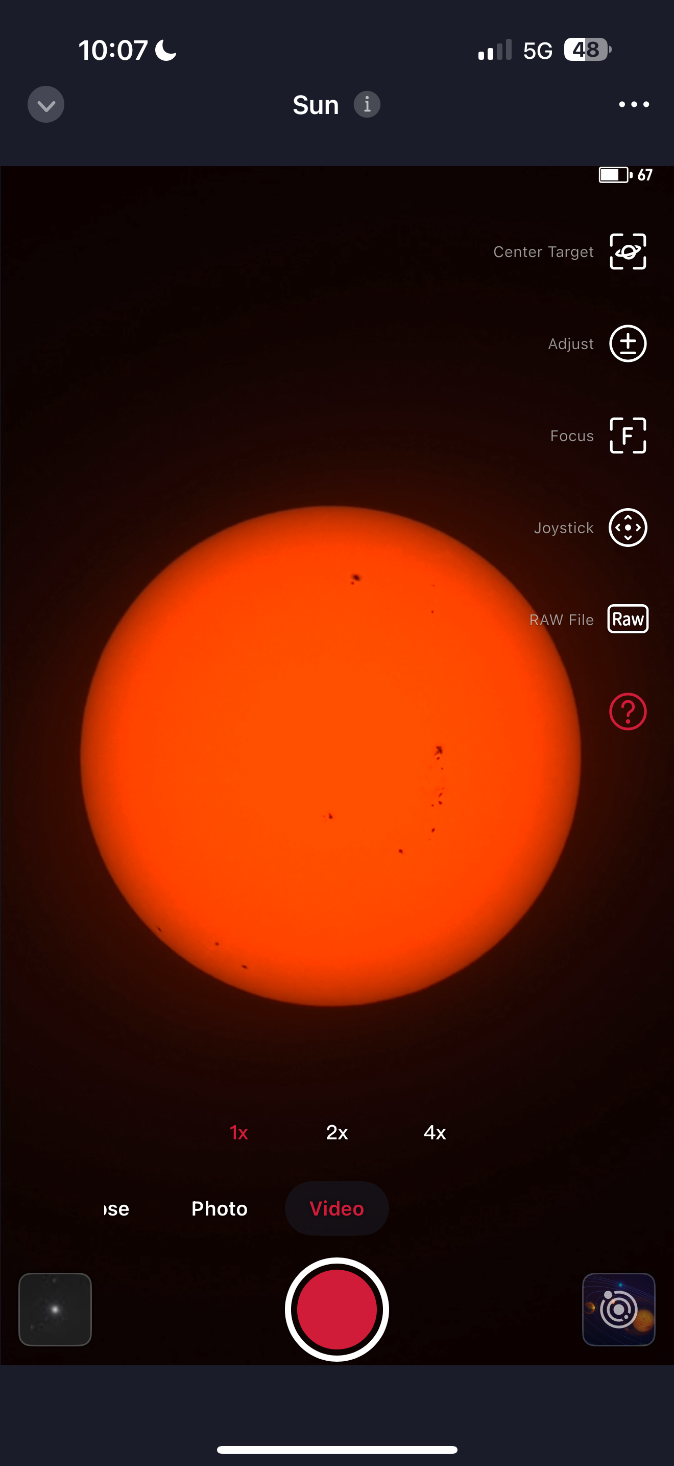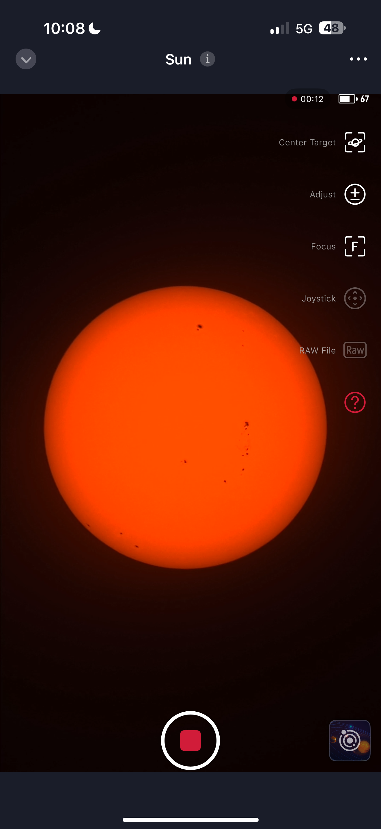 The staking option does not appear when a sun video stored into the Seestar is being played. Before taking a sun video, I make sure the RAW option is on, but after starting the capture, the RAW option goes off.