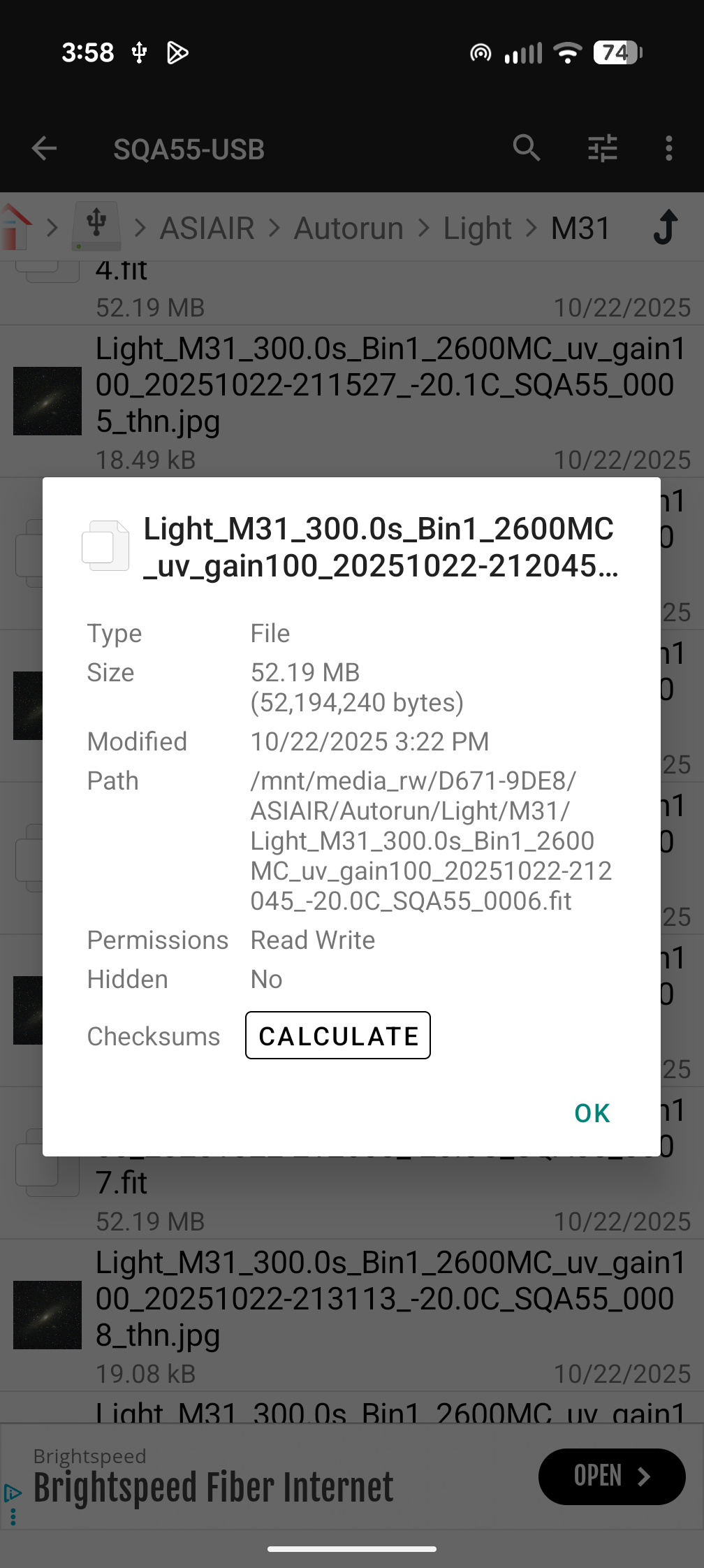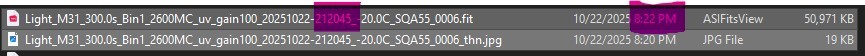 In the pic below, notice the screenshot timestamp matches the time shown on the ASIAIR app, and that it just finished image #6, but the timestamp on that file is 8:20pm instead of 9:20pm. Any ideas?